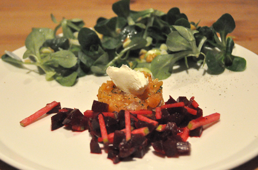 Restjes zalmtartare, sla en rode biet. Vond ik ook lekker.